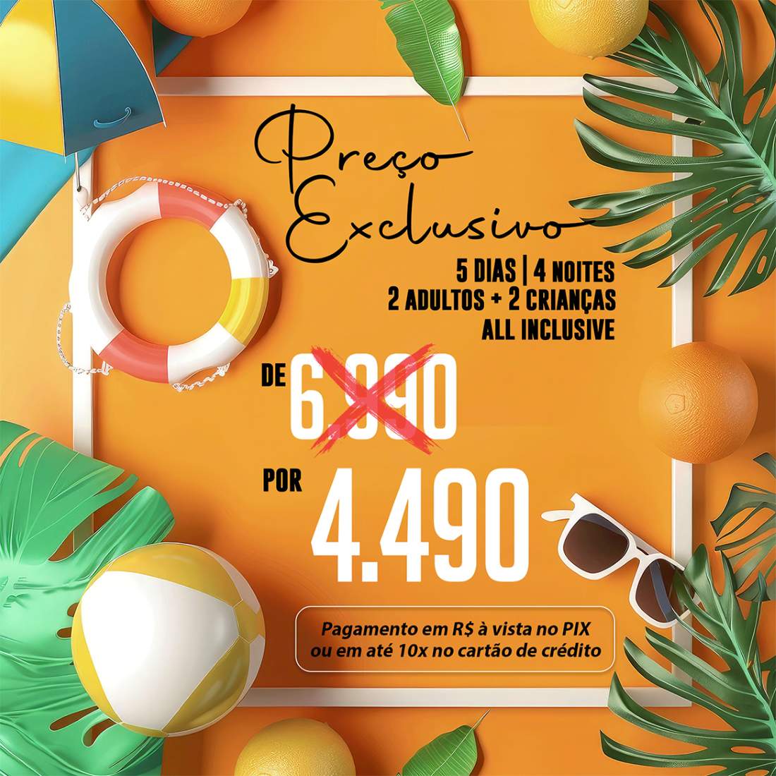 Não. A oferta é válida para uma única família por reserva. Caso duas ou mais famílias viagem juntas ou se hospedem no mesmo complexo no mesmo período, a condição especial será anulada.